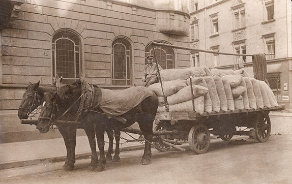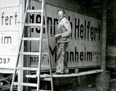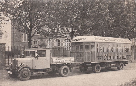 Der 1888 geborene Heinrich Helfert hatte zunächst eine Ausbildung zum Kaufmann in einer Bettfedernfabrik absolviert. Nach der Lehre stieg er ins elterliche Familienunternehmen ein. Er war wie sein Vater Peter ein Pferdekenner und Pferdenarr. Trotzdem musste er in den 1930er Jahren erkennen, dass die Motorisierung auch in seinem Gewerbe nicht aufzuhalten war. Neben den Möbeltransporten gab es vermehrt Transportaufträge aus anderen Bereichen. So wurde für die diversen Mühlen in und um Mannheim Mehl und Getreide gefahren. Aber auch Baumaterialen fanden sich auf den Fuhrwerken von Heinrich Helfert.