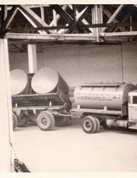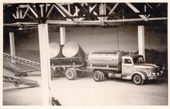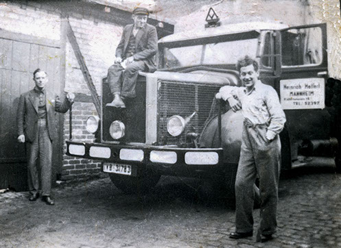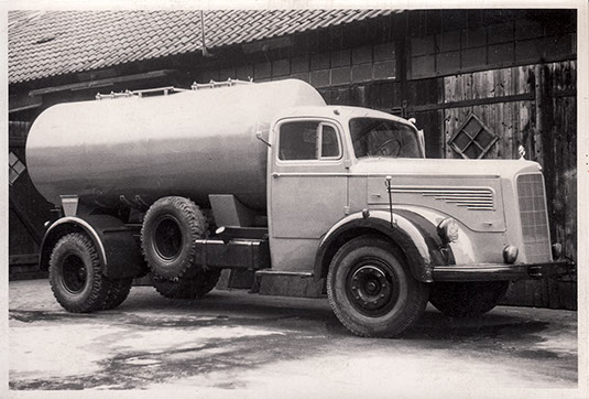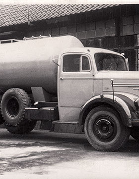 In den 50-er Jahren wurde der Fuhrpark stetig erweitert und die ersten Schüttgut-Transporte mittels Dreiseiten-Kipper erweiterten den Geschäftsbereich.