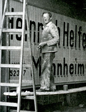 Der 1888 geborene Heinrich Helfert hatte zunächst eine Ausbildung zum Kaufmann in einer Bettfedernfabrik absolviert. Nach der Lehre stieg er ins elterliche Familienunternehmen ein. Er war wie sein Vater Peter ein Pferdekenner und Pferdenarr. Trotzdem musste er in den 1930er Jahren erkennen, dass die Motorisierung auch in seinem Gewerbe nicht aufzuhalten war. Neben den Möbeltransporten gab es vermehrt Transportaufträge aus anderen Bereichen. So wurde für die diversen Mühlen in und um Mannheim Mehl und Getreide gefahren. Aber auch Baumaterialen fanden sich auf den Fuhrwerken von Heinrich Helfert.
